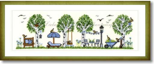 In diesem Beispiel haben wir die 4 Sommerzeiten aneinander gestickt und so eine tolle Idylle geschaffen. Das erforderliche Leinenstück in der Größe 15 x 40 cm können Sie separat bestellen. Sie können auch gerne bei uns anrufen - wir beantworten Ihre Fragen gerne!