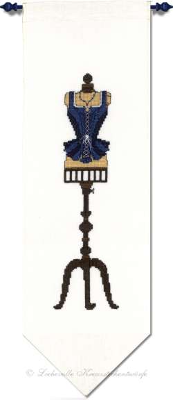 Die Packung enthält den benötigten Stoff, das Garn, die Stickanleitung sowie eine Nähanleitung für das Band.