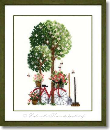 Fahrrad unter Bäumen, rot - Maxis Blumen, Häuser & Co.