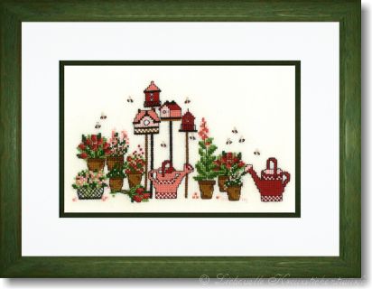 Gartenszene in rosé - Maxis Blumen, Häuser & Co.
