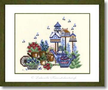 Blumen und Vogelhäuschen