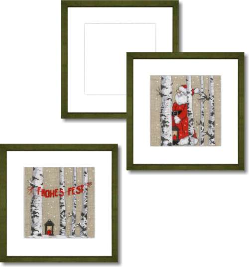 Dunkelgrüner Holzrahmen im quadratischen Format kombinert mit Passepartout. Der Rahmen hat eine runde Leistenform und ein Außenmaß von 20 x 20 cm. Das Passepartout hat einen Ausschnitt von 12 x 12 cm und ist mit Schrägschnitt gearbeitet. Der Rahmen wird ohne Glas geliefert, kann aber problemlos selbst mit Glas bestückt werden. Perfekt geeignet für unsere Midi Motive in quadratischem Format. Beachten Sie bei der Auswahl bitte die Größe der Stickerei. Setzen Sie Ihr Lieblingsmotiv in den hübschen Holzrahmen, in unserem Beispiel haben wir die Motive MD-228-17 Nikolaus im Birkenwald und MD-229-17 Frohes Fest eingerahmt In jedem Fall ein echter Hingucker an Ihrer Wand! Achtung: Farbabweichungen sind durch die shop Darstellung möglich
