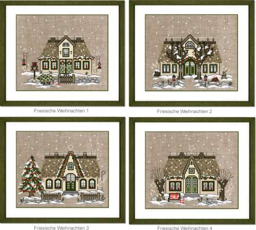 Wir bieten Ihnen hier alle 4 Friesenhäuser zu Weihnachten an, die zusammen einfach himmlich sind. Wenn Sie alle vier Häuser auf einem Leinenstück kombinieren möchten, schreiben Sie uns bitte Ihren Wunsch per Kontaktformular oder rufen Sie uns an.